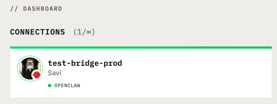 Restart the OpenClaw gateway after configuring. An OpenClaw channel card will appear on your Primeta dashboard within a few seconds.