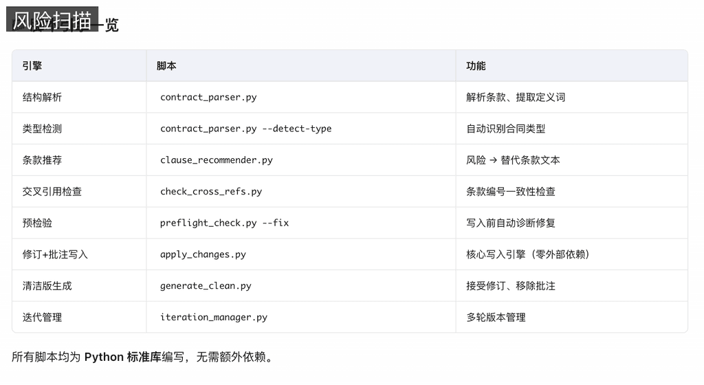 | 🔍 交叉引用检查 | 自动检测孤立引用、缺失条款、自引用问题 |